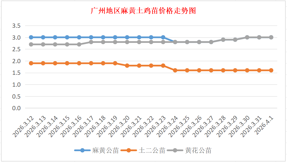 黄花公苗:价格稳定,竹料本地销售价3.00元/羽,稳。