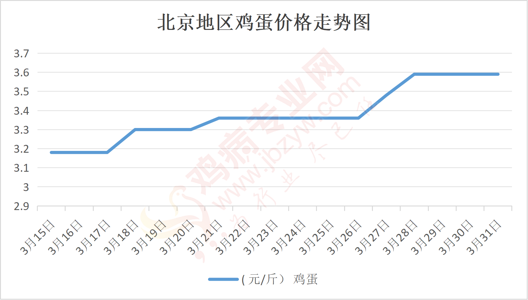 鸡病专业网消息:3月31日,北京各大市场鸡蛋价格维持稳定,主流参考价158元/44斤,石门,新发地、回龙观等主流批发价158元/44斤,稳;大洋路鸡蛋主流批发价格158元/44斤,稳,按质高低价均有,到车6台,走货一般。