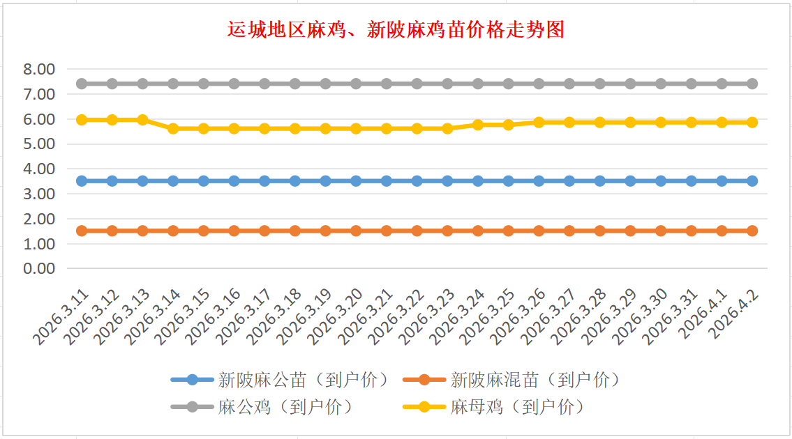 运城地区麻鸡、新陂麻鸡苗价格走势图(来源:鸡病专业网)