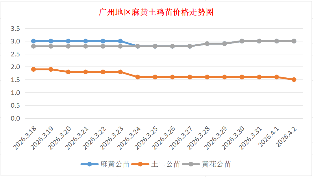 天露麻4公苗:价格上涨,竹料本地销售价2.40元/羽,涨。