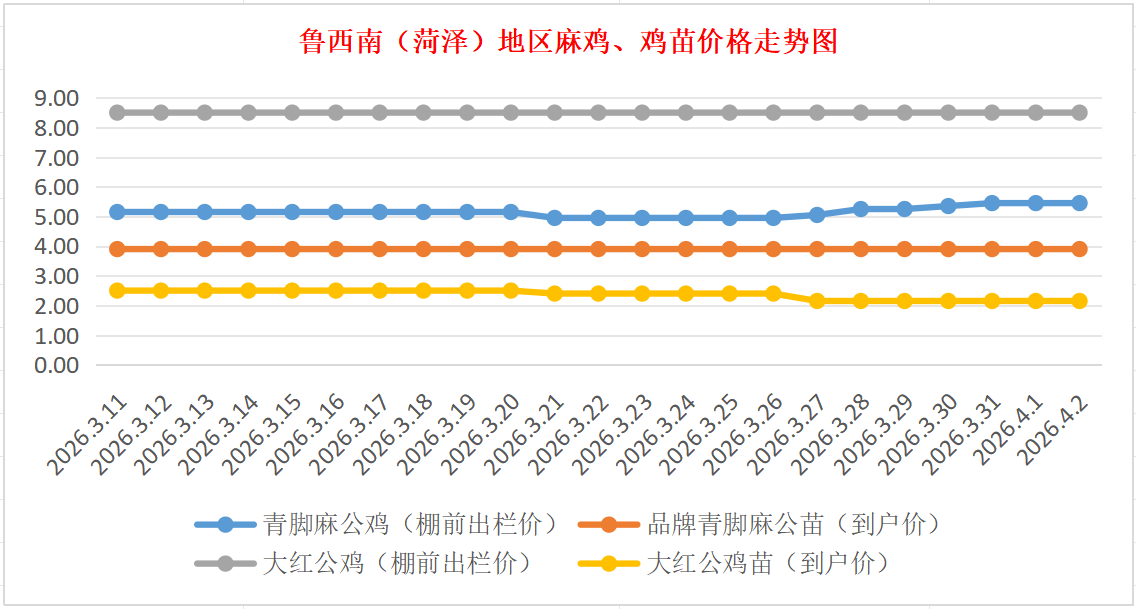 品牌青脚麻公苗:价格稳定,主流到户价3.80-4.00元/羽,稳。