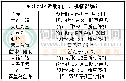 据统计显示,目前东北的部分工厂已经因大豆紧缺停机,进入4月后范围逐渐扩大,仅有几家油厂有足够的大豆能坚持开机压榨,而最快的也在4月中旬才能恢复开机压榨,而大范围恢复开机需要等到4月下旬至月底。