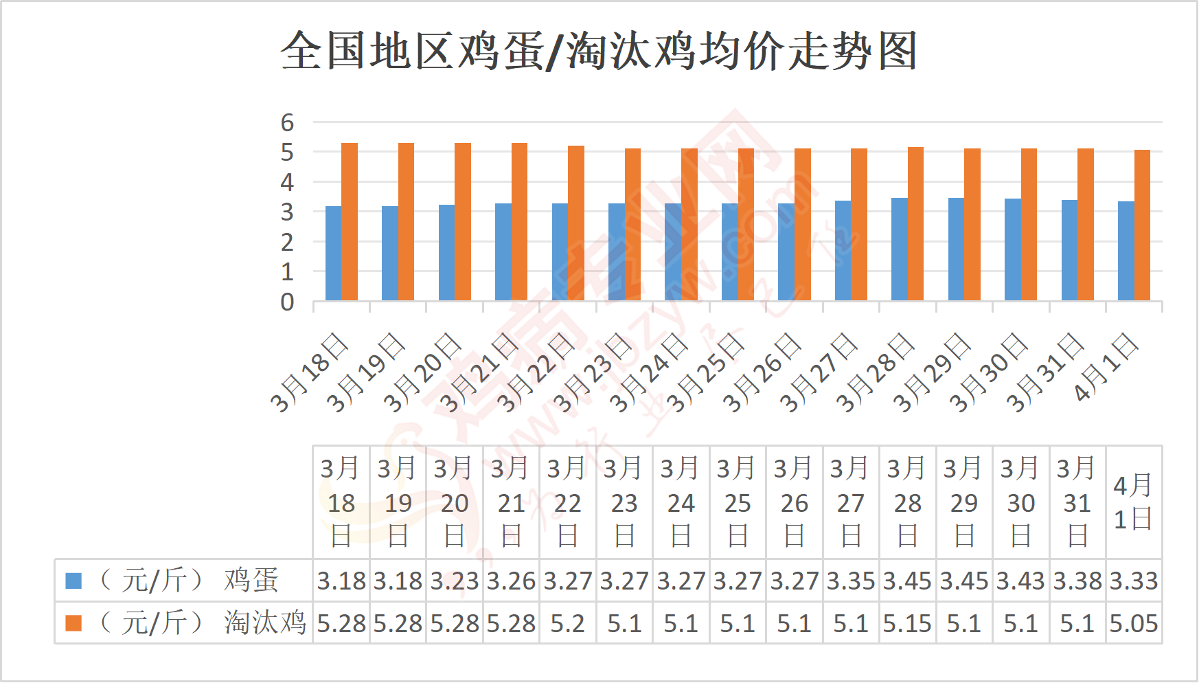 河南地区:许昌红蛋纸箱大码3.25-3.3元/斤,与昨日相比持平,淘汰鸡5.1元/斤;