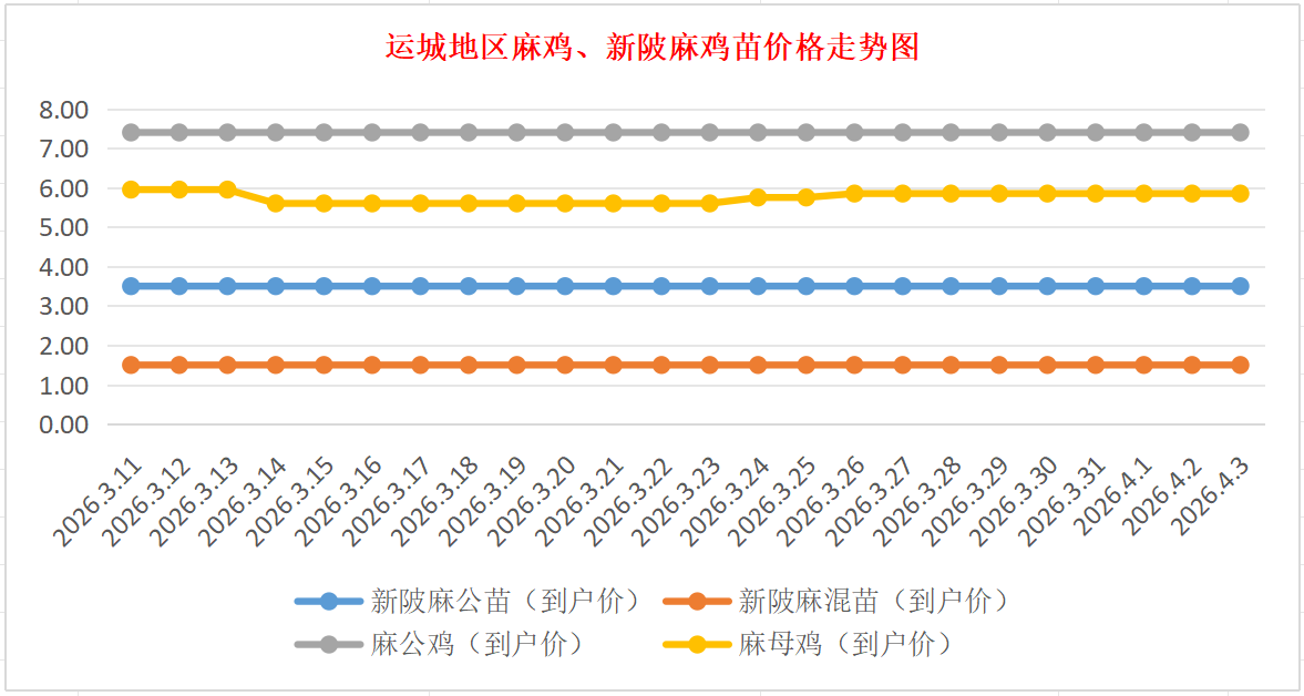 运城地区麻鸡、新陂麻鸡苗价格走势图(来源:鸡病专业网)