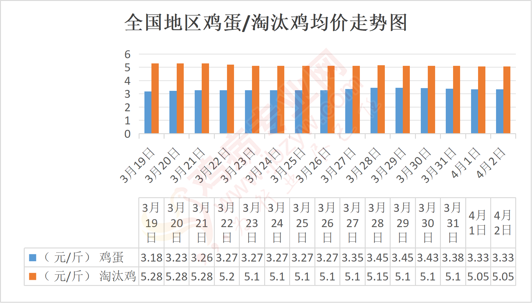 河北地区:承德鸡蛋3.37元/斤,与昨日相比持平,淘汰鸡4.6元/斤;