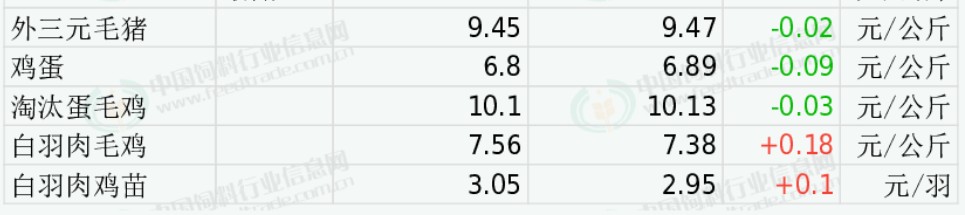 今日白羽肉鸡苗价格上涨。白羽肉鸡行情反弹带动补栏需求回暖,叠加种禽供应偏紧,挺价意愿增加,预计近期鸡苗价格维持震荡偏强。今日主产区山东白羽鸡苗均价2.84元/羽,较昨日价格上涨0.09;辽宁均价3.25元/羽,较昨日价格上涨0.10。