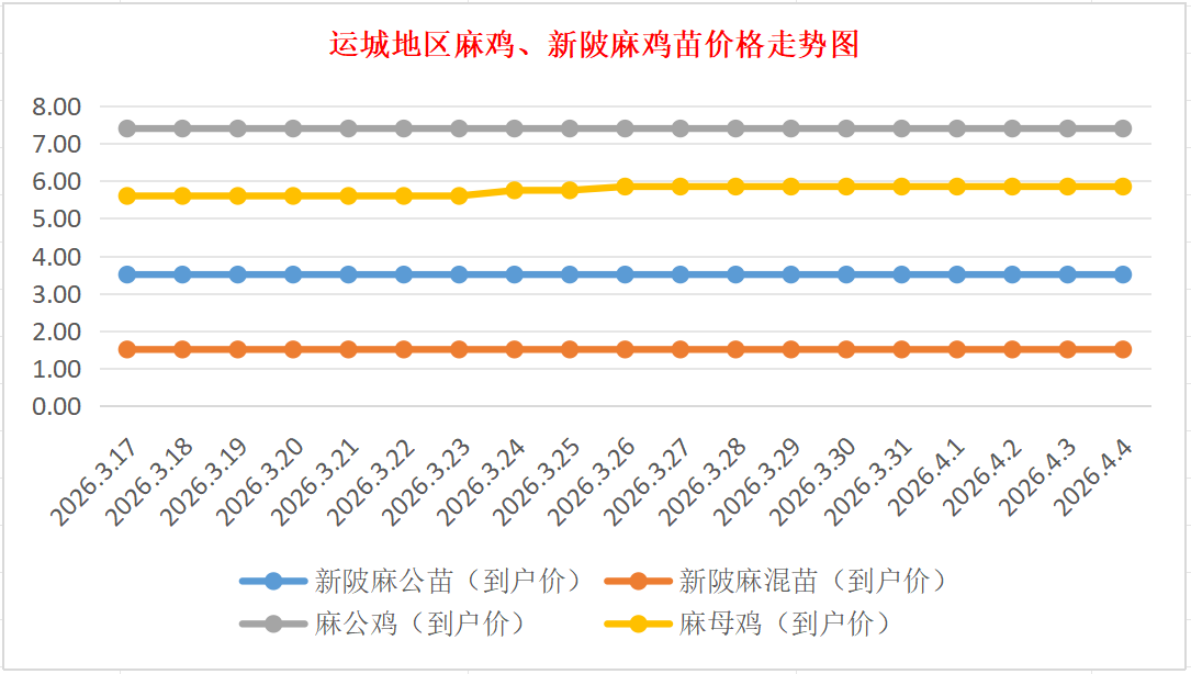 运城地区麻鸡、新陂麻鸡苗价格走势图(来源:鸡病专业网)