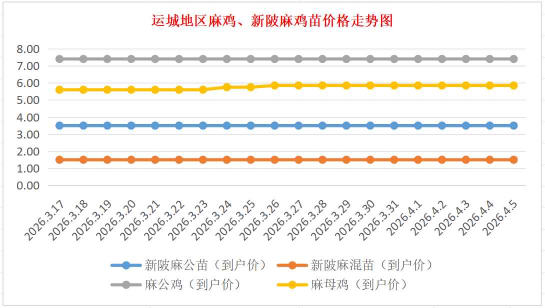 运城地区麻鸡、新陂麻鸡苗价格走势图(来源:鸡病专业网)