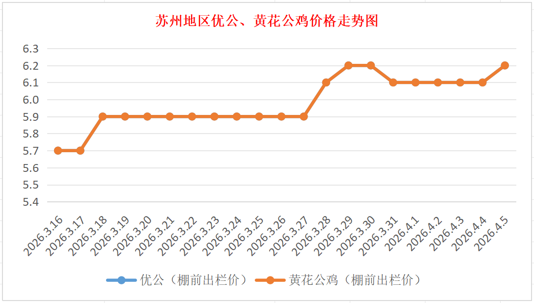 苏州地区优公、黄花公鸡价格走势图(来源:鸡病专业网)