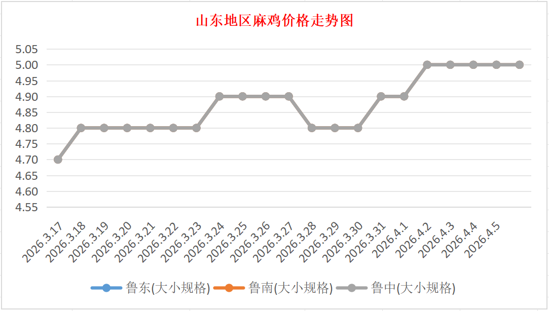 麻鸡成鸡:价格稳定,社会鸡收购棚前主流价大小规格:4.90-5.10元/斤,稳。