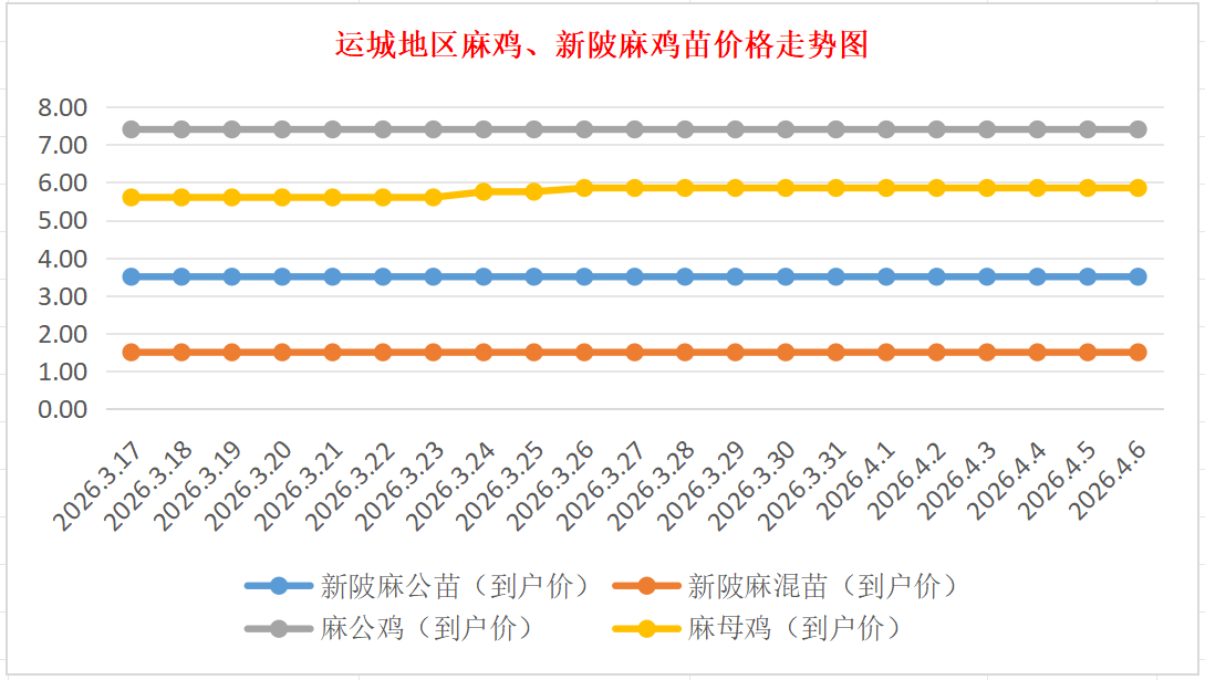 运城地区麻鸡、新陂麻鸡苗价格走势图(来源:鸡病专业网)