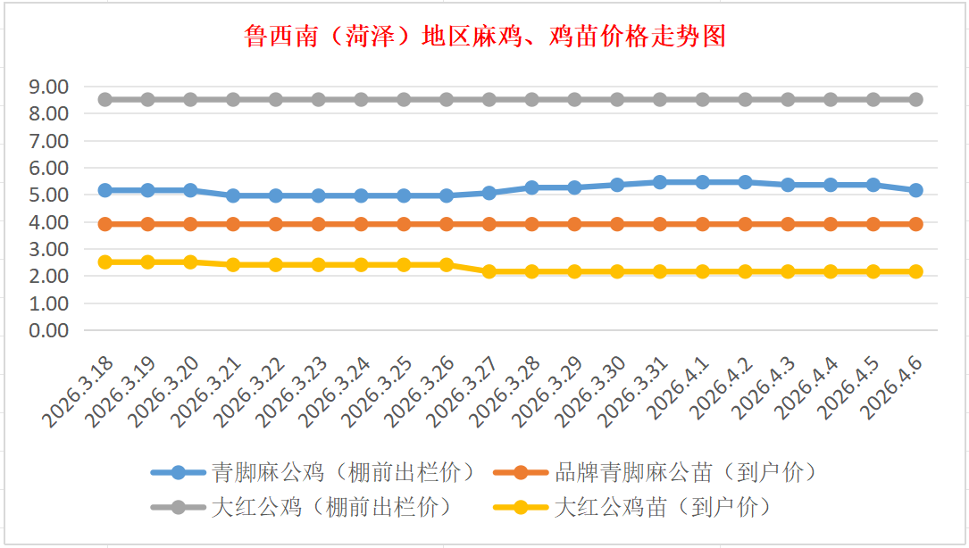 品牌青脚麻公苗:价格稳定,主流到户价3.80-4.00元/羽,稳。