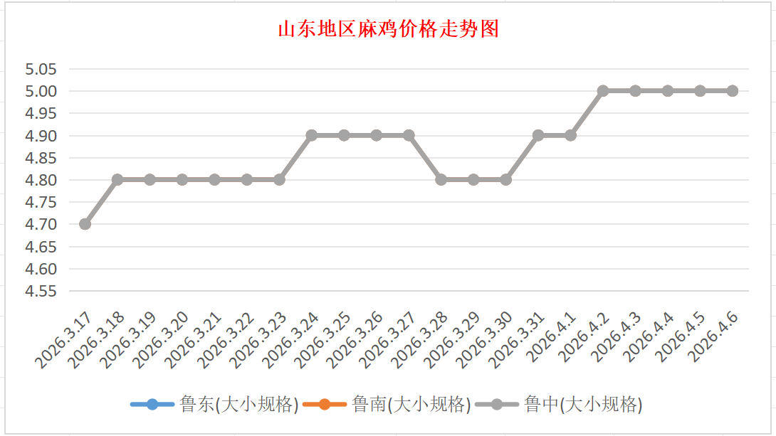 麻鸡成鸡:价格稳定,社会鸡收购棚前主流价大小规格:4.90-5.10元/斤,稳。