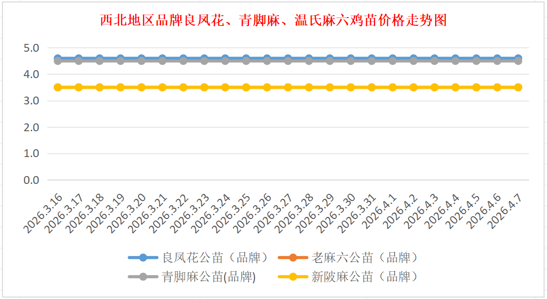 品牌新陂麻:价格稳定,到户价公苗4.50元/羽,稳。