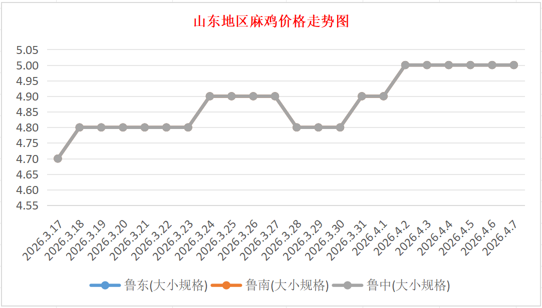 麻鸡成鸡:价格稳定,社会鸡收购棚前主流价大小规格:4.90-5.10元/斤,稳。