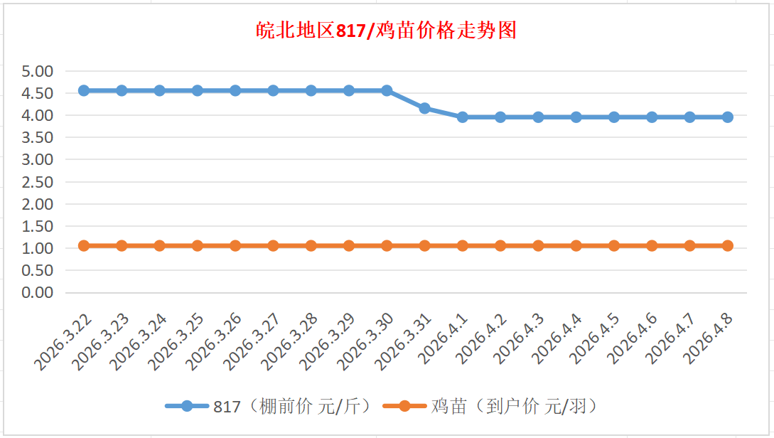 鸡病专业网独家信息:2026年4月8日皖北地区817-麻鸡行情最新走势