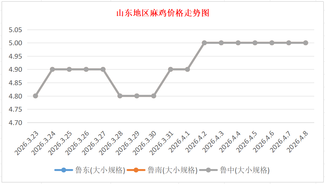 麻鸡成鸡:价格稳定,社会鸡收购棚前主流价大小规格:4.90-5.10元/斤,稳。
