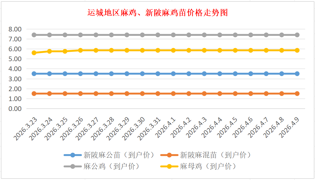 运城地区麻鸡、新陂麻鸡苗价格走势图(来源:鸡病专业网)