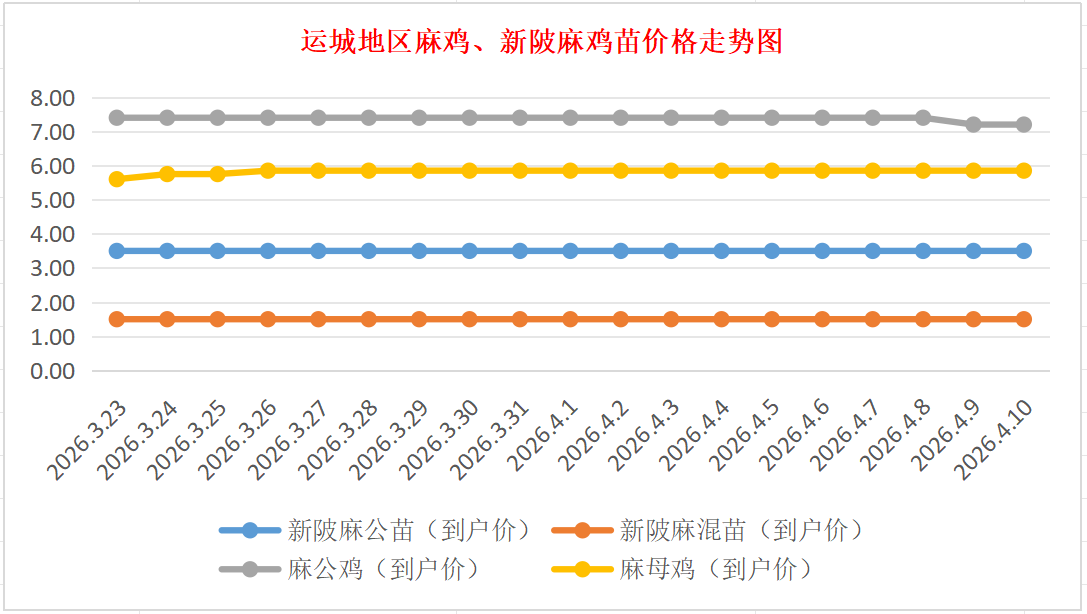 运城地区麻鸡、新陂麻鸡苗价格走势图(来源:鸡病专业网)