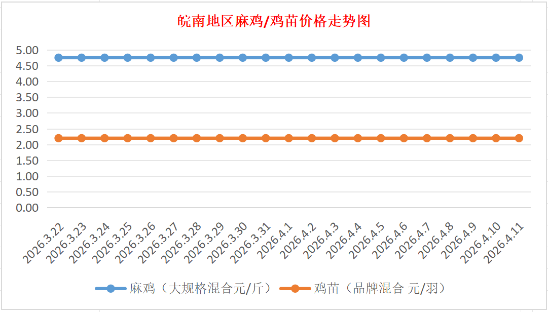 鸡病专业网独家信息:2026年4月11日皖南地区817-麻鸡行情最新走势