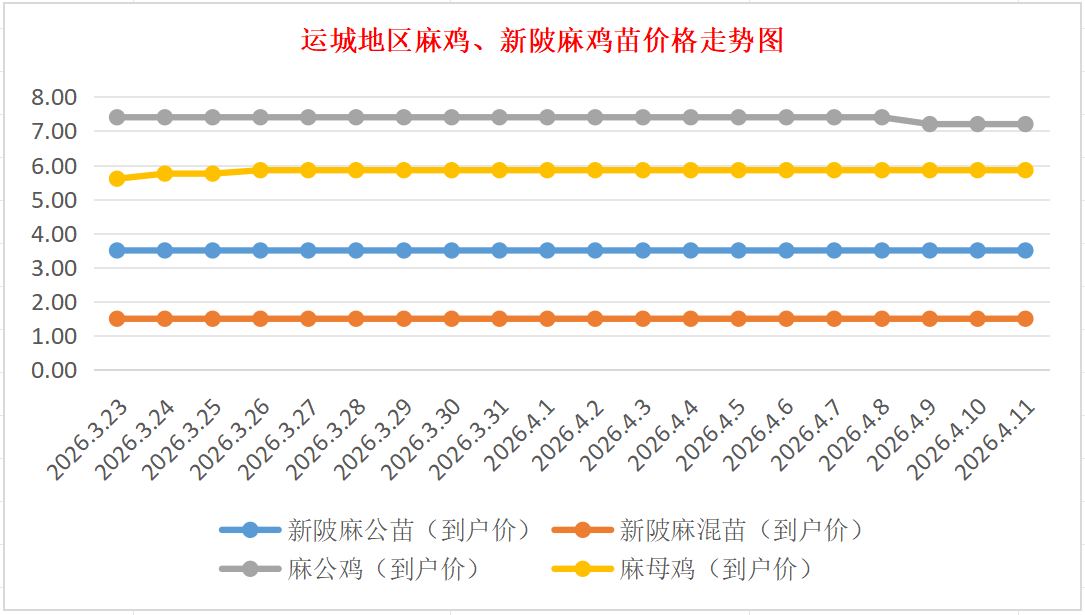运城地区麻鸡、新陂麻鸡苗价格走势图(来源:鸡病专业网)