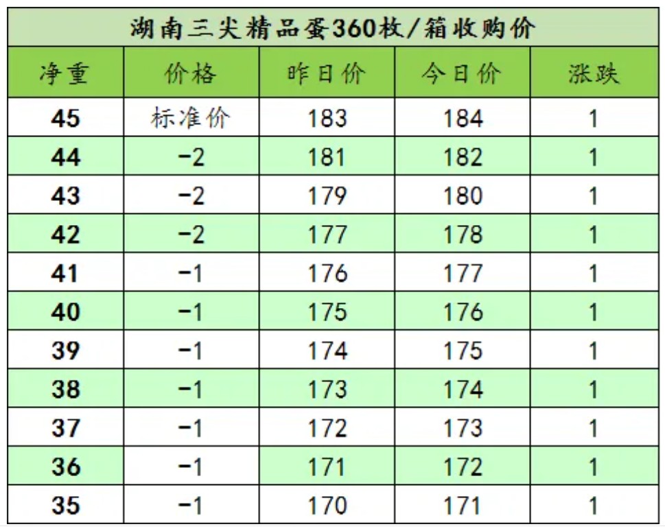 今日收购价格184元/件。