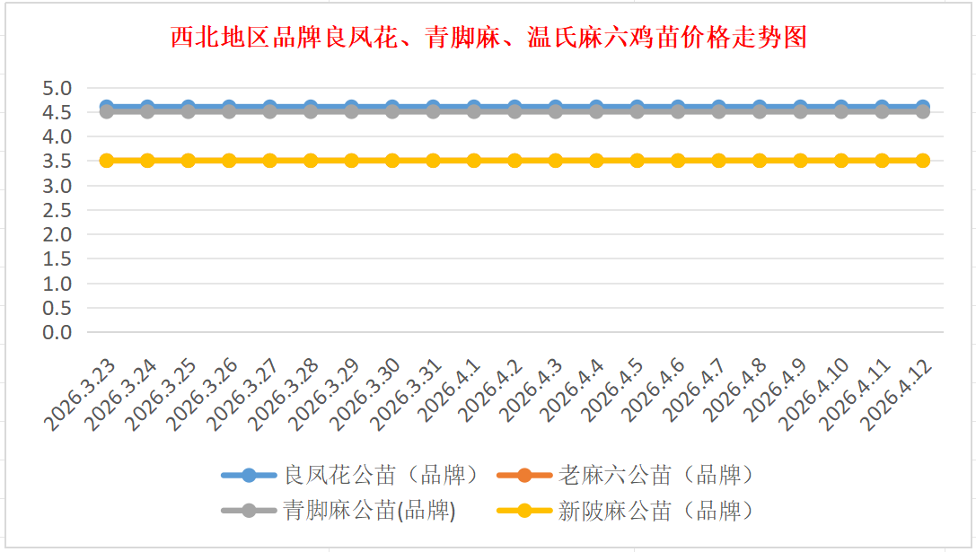 品牌新陂麻:价格稳定,到户价公苗4.50元/羽,稳。