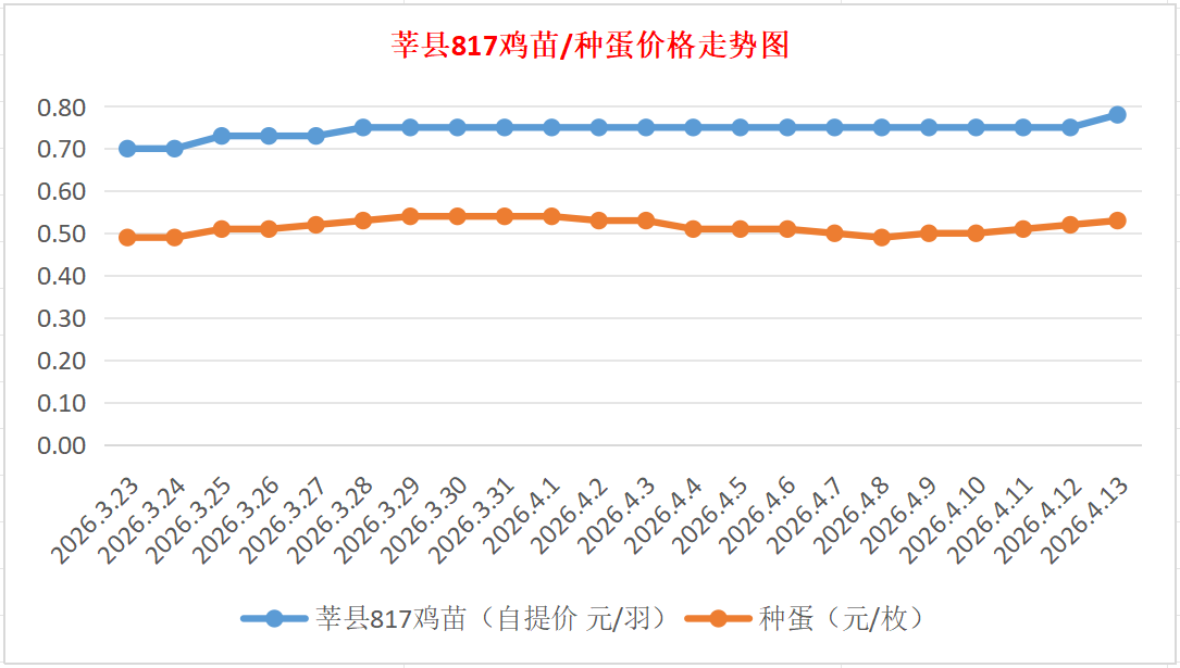 817鸡苗(混合):报价自提0.78元/羽。