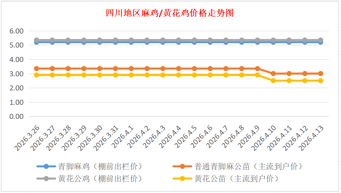 普通青脚麻公苗:价格稳定,主流到户价2.80-3.20元/羽,稳。