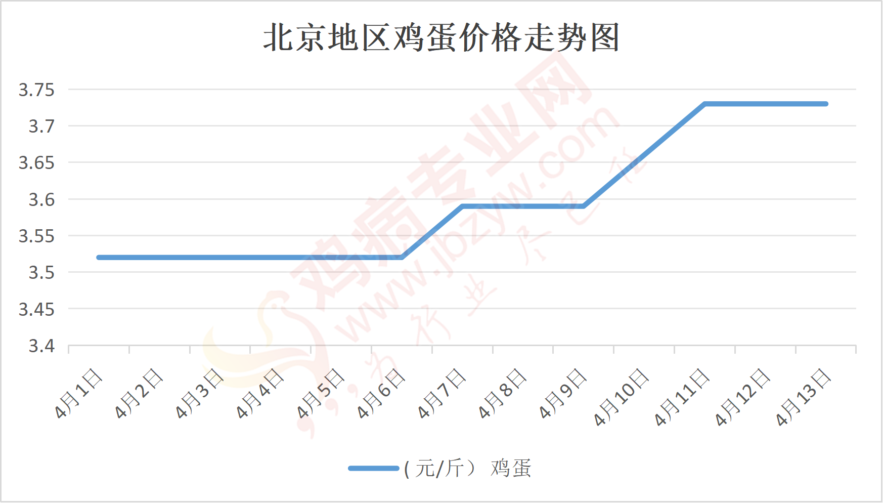 鸡病专业网消息:4月13日,北京各大市场鸡蛋价格维持稳定,主流参考价164元/44斤,石门,新发地、回龙观等主流批发价164元/44斤,稳;大洋路鸡蛋主流批发价格164元/44斤,稳,按质高低价均有,到车4台,走货稍快。