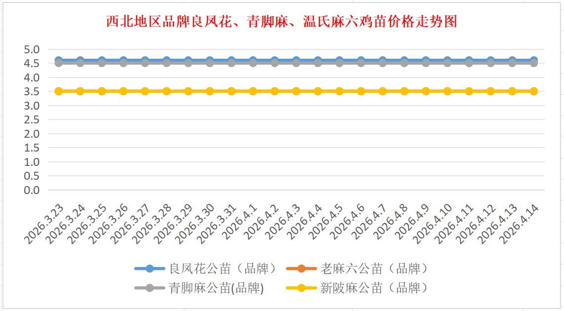 品牌新陂麻:价格稳定,到户价公苗4.50元/羽,稳。