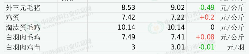 白羽肉毛鸡价格震荡偏强。当前毛鸡出栏阶段性偏少,养殖成本对价格形成支撑,但终端需求走弱,屠宰企业产品走货偏慢、库存偏高,叠加低价猪肉替代影响,市场上涨动力不足。预计短期毛鸡价格维持区间震荡。今日主产区山东白羽肉毛鸡均价7.13元/公斤,较昨日价格上涨0.10;辽宁均价7.74元/公斤,较昨日价格上涨0.10;主销区江苏均价8.20元/公斤,较昨日价格下跌0.03。