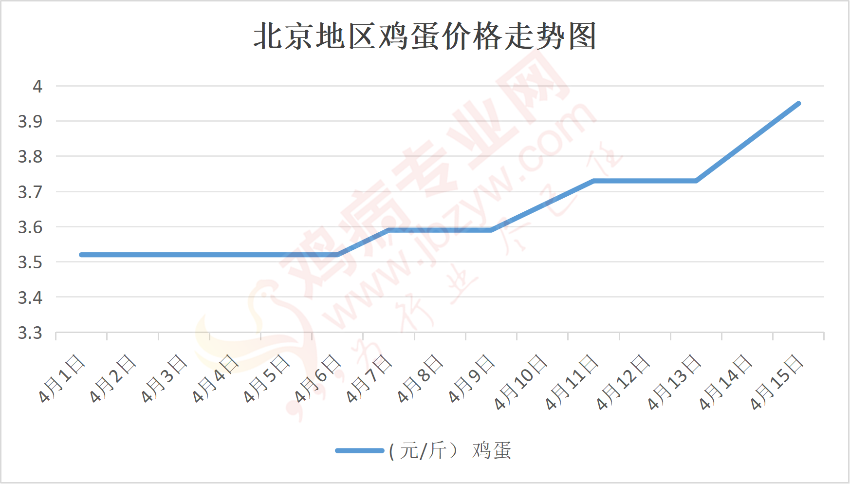 鸡病专业网消息:4月15日,北京各大市场鸡蛋价格上涨,主流参考价174元/44斤,石门,新发地、回龙观等主流批发价174元/44斤,涨;大洋路鸡蛋主流批发价格174元/44斤,涨,按质高低价均有,到车5台,走货正常。