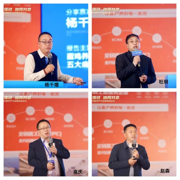 此外,杨凌泓雁换羽研究所所长杨千熠、成都小巨人畜牧设备有限公司钢结构事业部总经理杜明、动物营养与饲料科学博士/金微健农牧技术研发总经理高庆、石牧药业特聘欧洲技术研究员 Dr.Gharib 博士团队代表赵森,分别围绕各自核心主题进行了深度拆解与分享。其中,杨千熠所长聚焦《蛋鸡养殖的五大痛点与破局之道》,结合蛋鸡养殖一线实操场景,精准剖析当前养殖过程中在品种选择、饲养管理、疫病防控、成本控制、效益提升等方面的五大核心痛点,结合自身研究成果与行业实践案例,提出针对性的破局思路与可落地的解决方案,助力从业者精准破解养殖难题、提升养殖效益;杜明总经理围绕《从设计到交付:规模化养殖场EPC全生命周期价值探究》,系统阐述规模化养殖场EPC模式的核心内涵、设计要点、建设流程与交付标准,深入解析EPC模式在降低建设成本、缩短建设周期、提升养殖设施适配性等方面的优势,结合实操案例分享规模化养殖场EPC全生命周期的运营管理经验,为规模化蛋鸡场建设与升级提供专业指引;石牧药业相关专家则围绕《欧盟标准引领:纳米功能性维生素技术创新与产业应用》,立足欧盟先进标准,详解纳米功能性维生素的技术创新点、产品优势,分析其在蛋鸡养殖中的应用价值与推广前景,为蛋鸡产业营养调控技术升级、与国际标准接轨提供有力支撑。各位专家结合行业实践案例,既深入分析了当前技术应用与产业发展中的痛点难点,也提出了可复制、可推广的解决方案,内容兼具理论高度与实操性,为行业破解发展瓶颈、实现提质增效提供了有力支撑;高庆博士以《新型微量元素研制及在蛋鸡生产中的增值应用》为主题,系统介绍新型微矿的研制理念、产品特性与研发优势,深入分析其在蛋鸡营养调控、生产性能提升、蛋品品质改善中的增值作用,结合一线养殖案例分享新型微矿的科学应用方法,助力养殖企业通过营养优化实现提质增效。