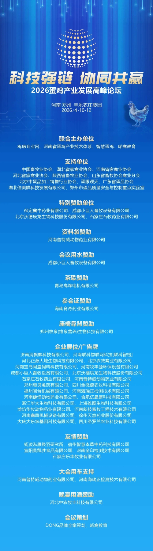 与会代表一致认为,本次大会精准把脉蛋鸡产业发展趋势,直面产业发展痛点,凝聚了行业发展共识,既明晰了科技赋能、链条协同、品牌引领、绿色发展的产业发展核心方向,也提供了一批兼具科学性与实操性的技术方案与运营模式。此次大会的成功举办,不仅为蛋鸡产业上下游搭建了高效的交流合作平台,更为推动我国蛋鸡产业从“传统养殖”向“现代养殖”转型、从“产能驱动”向“价值驱动”升级注入了强劲动力。下一步,行业各界将以此次大会为契机,持续强化产学研协同创新,推进标准化养殖、数智化管控、品牌化运营,加快构建高效、安全、绿色、可持续的现代蛋鸡产业体系,助力我国蛋鸡产业高质量发展行稳致远,为保障畜禽产品供给、推动乡村振兴作出更大贡献。