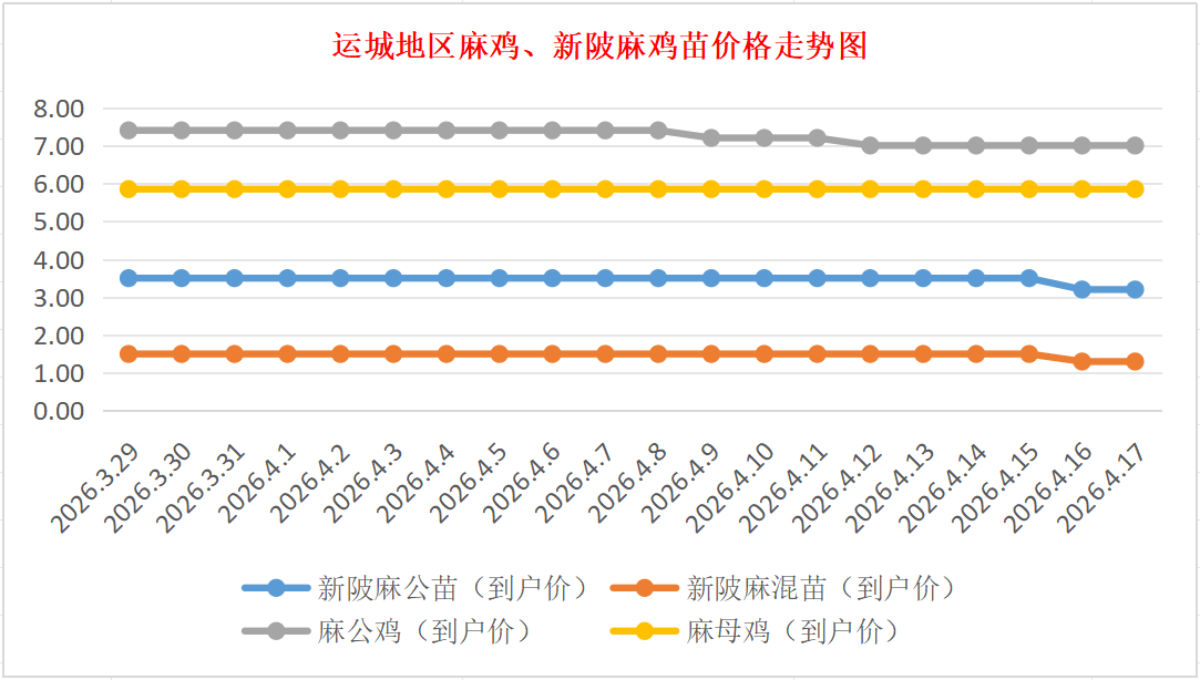 运城地区麻鸡、新陂麻鸡苗价格走势图(来源:鸡病专业网)