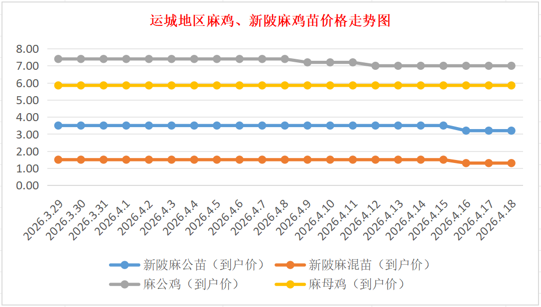 运城地区麻鸡、新陂麻鸡苗价格走势图(来源:鸡病专业网)