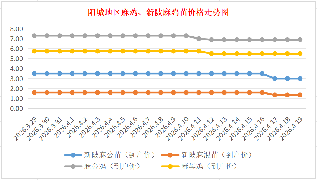 阳城地区麻鸡、新陂麻鸡苗价格走势(来源:鸡病专业网)