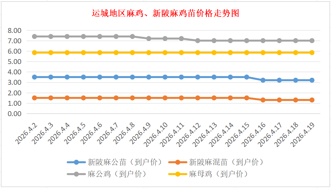 运城地区麻鸡、新陂麻鸡苗价格走势图(来源:鸡病专业网)