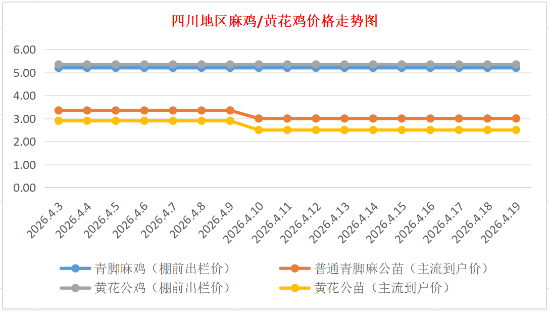 普通青脚麻公苗:价格稳定,主流到户价2.80-3.20元/羽,稳。