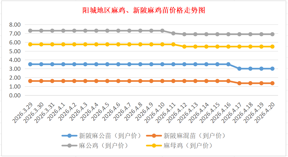 阳城地区麻鸡、新陂麻鸡苗价格走势(来源:鸡病专业网)