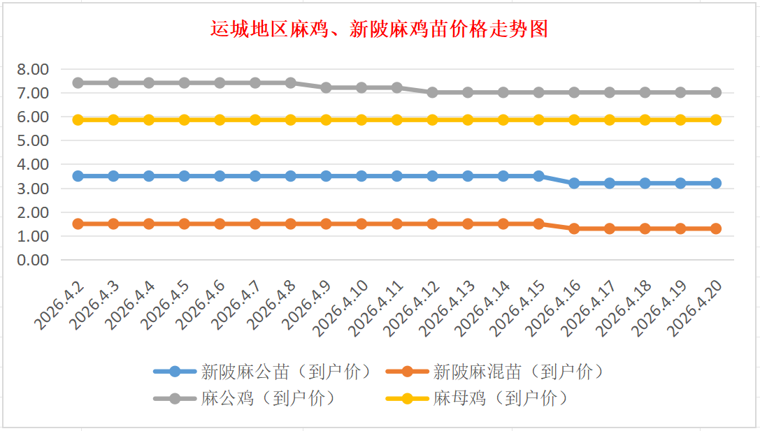 运城地区麻鸡、新陂麻鸡苗价格走势图(来源:鸡病专业网)