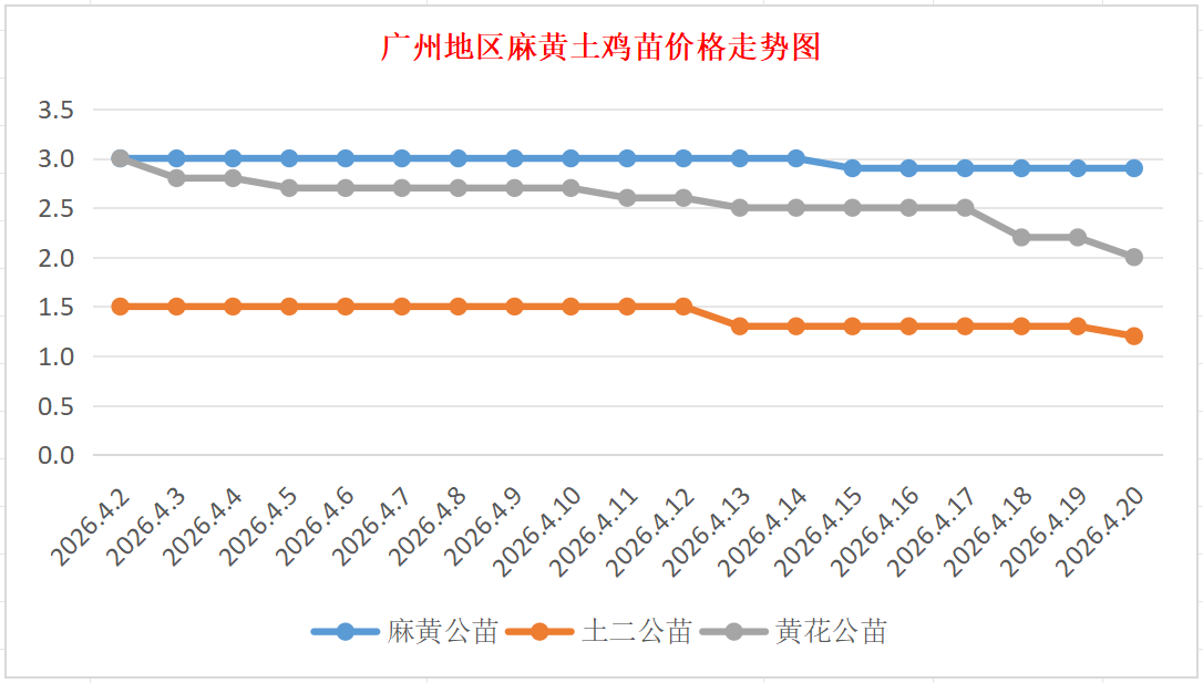 黄花公苗:价格下滑,竹料本地销售价2.00元/羽,落。