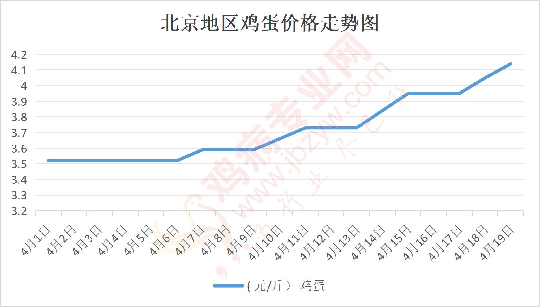 鸡病专业网消息:4月19日,北京各大市场鸡蛋价格上涨4元,主流参考价182元/44斤,石门,新发地、回龙观等主流批发价182元/44斤,涨;大洋路鸡蛋主流批发价格182元/44斤,涨,按质高低价均有,到车4台,走货正常。