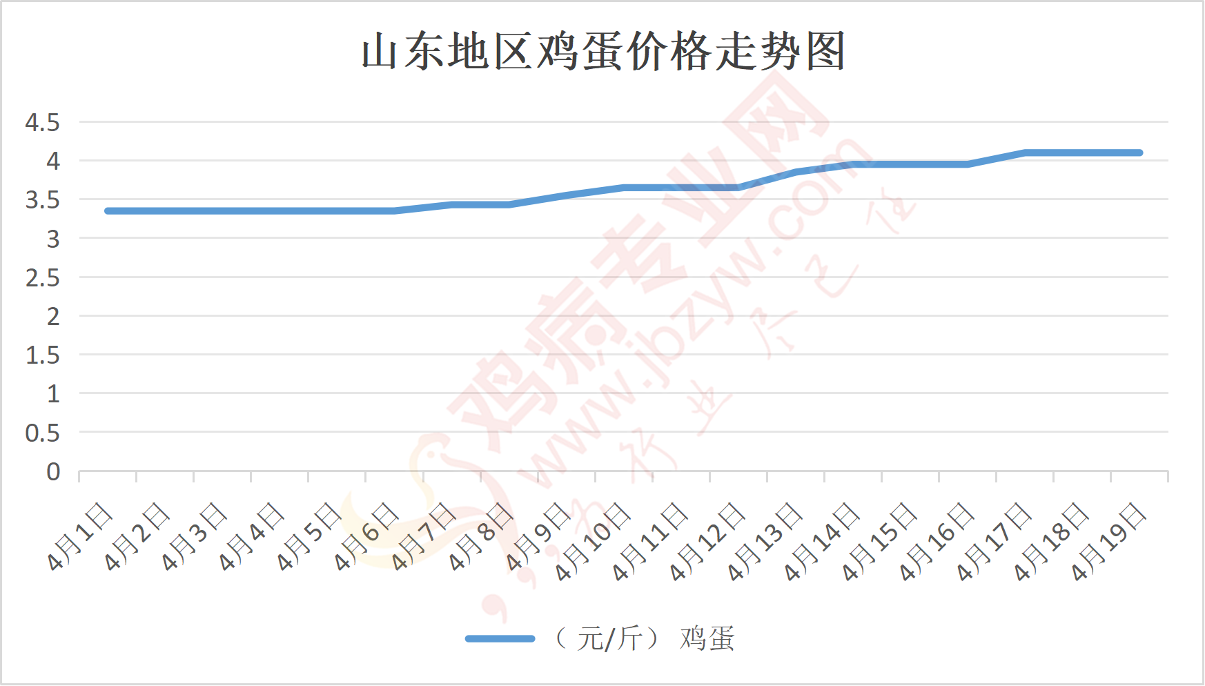 鸡病专业网消息:4月19日,山东地区莱阳鸡蛋4.1元/斤,稳;青岛鸡蛋4.1元/斤,稳;诸城鸡蛋4.15元/斤,稳;安丘鸡蛋4.1元/斤,稳;昌乐鸡蛋4.1元/斤,稳;寿光鸡蛋4.1元/斤,稳;昌邑鸡蛋4.1元/斤,稳;高密鸡蛋4.15元/斤,稳;青州鸡蛋4.1元/斤,稳;临朐鸡蛋4.1元/斤,稳;莱州鸡蛋4.1元/斤,稳;威海鸡蛋4.1元/斤,稳;临沭鸡蛋4.05元/斤,稳;沂水鸡蛋4.05元/斤,稳;沂南鸡蛋4.05元/斤,稳;莒南鸡蛋4.05元/斤,稳;兰陵县鸡蛋4.05元/斤,稳;日照鸡蛋4.05元/斤,稳;莒县鸡蛋4.05元/斤,稳;日照辛萁商贸鸡蛋4.05元/斤,稳;泗水鸡蛋价格121元/30斤,稳;济宁、汶上鸡蛋价格121元/30斤,稳;梁山、东平红蛋价格121元/30斤,稳;枣庄滕州地区鸡蛋混码主流到户122元/30斤,稳;泰安地区新泰鸡蛋价格121元/30斤,稳;菏泽地区曹县主流到户121元/30斤,稳;成武鸡蛋价格121元/30斤,稳;单县到户121元/30斤,稳;聊城莘县121元/30斤,稳;莱芜鸡蛋182元/45斤,稳;济南鸡蛋182元/45斤,稳;德州鸡蛋160元/40斤,稳;滨州鸡蛋160元/40斤,稳。