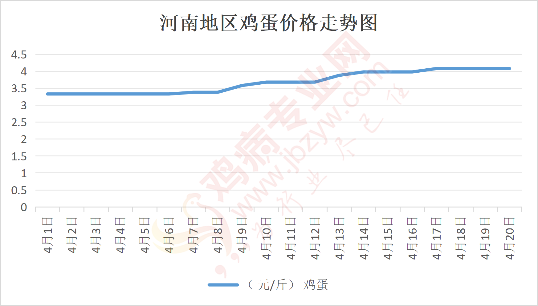 鸡病专业网消息:4月20日,河南郑州鸡蛋4.1元/斤,稳;新密鸡蛋4.1元/斤,稳;荥阳鸡蛋4.1元/斤,稳;中牟鸡蛋4.1元/斤,稳;周口鸡蛋4.05元/斤,稳;商丘鸡蛋122元/30斤,稳;鹤壁鸡蛋4.1元/斤,稳;汝州鸡蛋4.05元/斤,稳;开封鸡蛋122元/30斤,稳;漯河鸡蛋4.05元/斤,稳;漯河临颍鸡蛋4.05元/斤,稳;许昌鸡蛋4.05元/斤,稳;南阳鸡蛋4.05元/斤,稳;南阳邓州鸡蛋4.05元/斤,稳;新乡鸡蛋4.05元/斤,稳;安阳鸡蛋4.05元/斤,稳;新郑鸡蛋4.1元/斤,稳;登封鸡蛋4.1元/斤,稳;平顶山鸡蛋4.05元/斤,稳;驻马店鸡蛋4.05元/斤,稳;三门峡鸡蛋4.05元/斤,稳;焦作鸡蛋4.05元/斤,稳;信阳鸡蛋4.05元/斤,稳;濮阳鸡蛋4.05元/斤,稳。