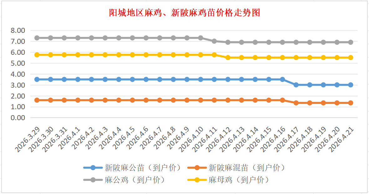 阳城地区麻鸡、新陂麻鸡苗价格走势(来源:鸡病专业网)