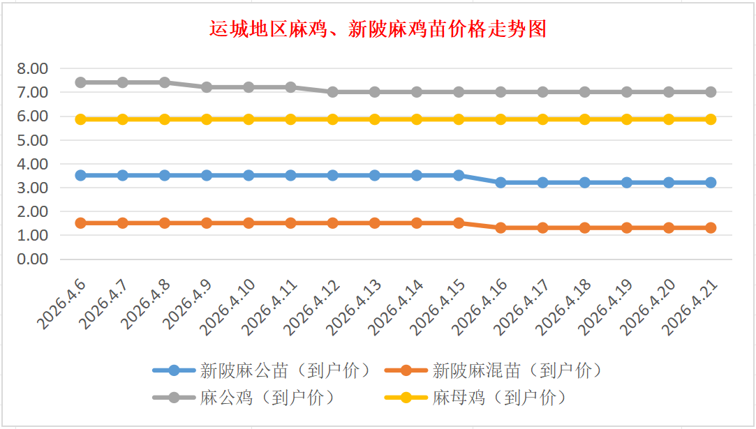 运城地区麻鸡、新陂麻鸡苗价格走势图(来源:鸡病专业网)