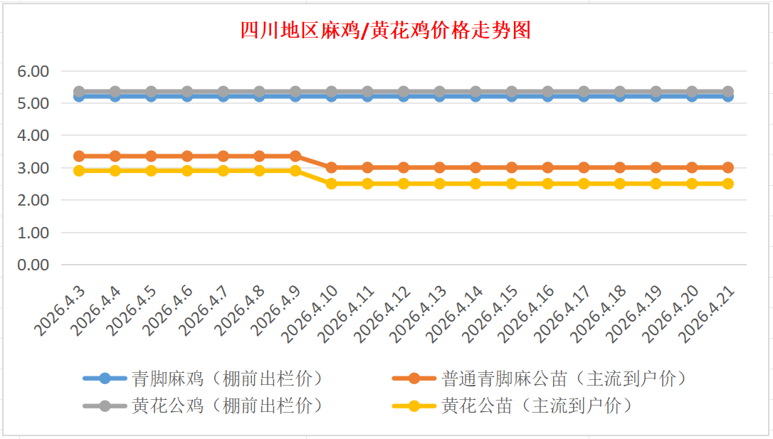 普通青脚麻公苗:价格稳定,主流到户价2.80-3.20元/羽,稳。