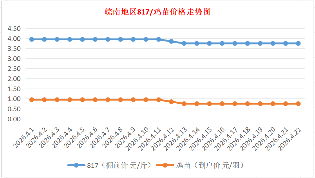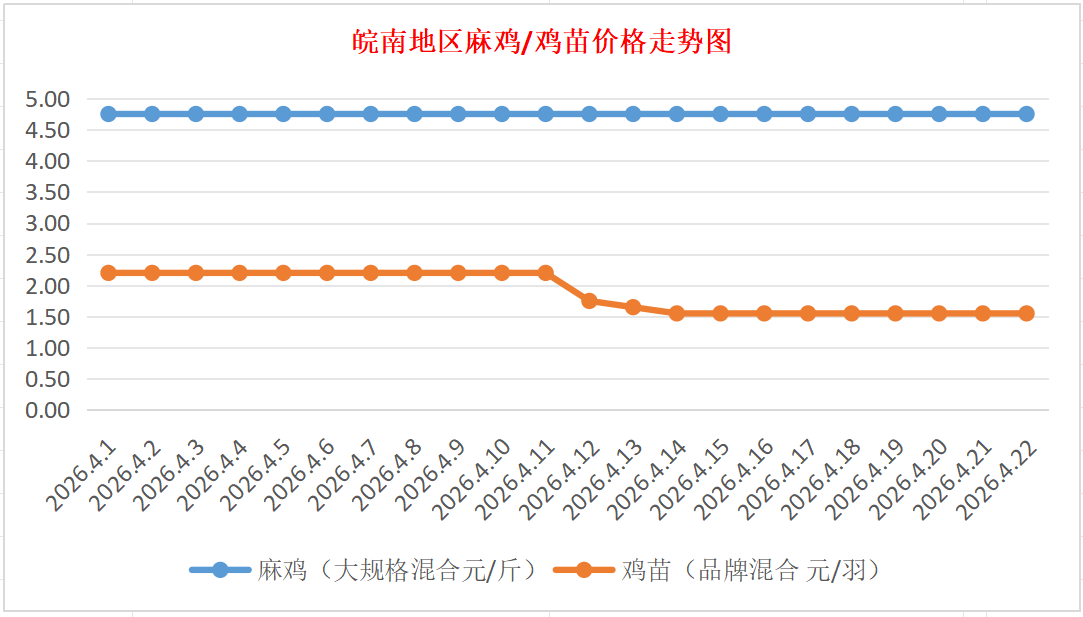 鸡病专业网独家信息:2026年4月22日皖南地区817-麻鸡行情最新走势